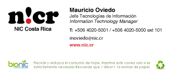 ¡Buenas noches! Agradecemos a los participantes que tendrán a cargo alguna de las presentaciones hacernos llegar los slides o archivo PDF al correo ti@nic.crmailto:ti@nic.cr para cargar la información en la computadora que hará la transmisión. ¡Nos vemos pronto! Good evening! We thank the participants that will be presenting during the workshop to send us the slides or PDF files to the email ti@nic.crmailto:ti@nic.cr to upload them to the computer that will be handling the streaming. See you all soon! Saludos, Mauricio [cid:image001.png@01D3202F.E5B14C70]
